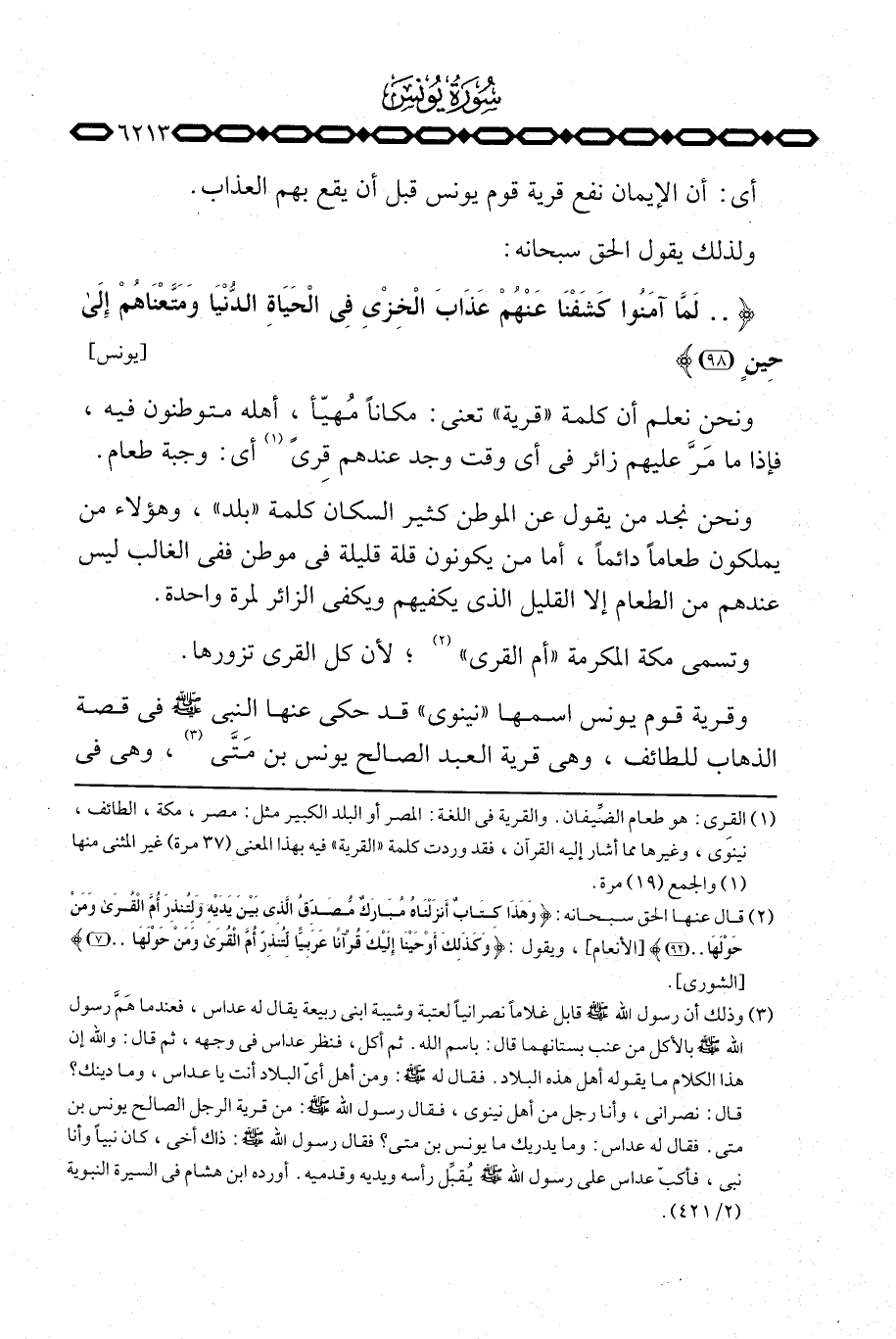 وقرية قوم يونس اسمها «نينوى» قد حكى عنها النبي صَلَّى اللَّهُ عَلَيْهِ وَسَلَّم َ في قصة الذهاب للطائف، وهي قرية العبد الصالح يونس بن مَتَّى، وهي في