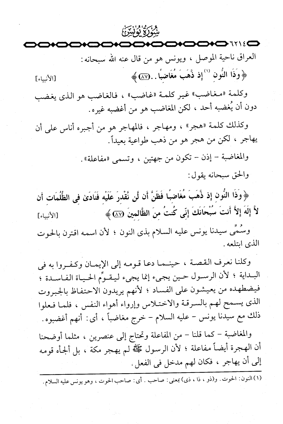 والمغاضبة كما قلنا من المفاعلة وتحتاج إلى عنصرين، مثلما أوضحنا أن الهجرة أيضاً مفاعلة؛ لأن الرسول صَلَّى اللَّهُ عَلَيْهِ وَسَلَّم َ لم يهجر مكة، بل ألجأه قومه إلى أن يهاجر، فكان لهم مدخل في الفعل.