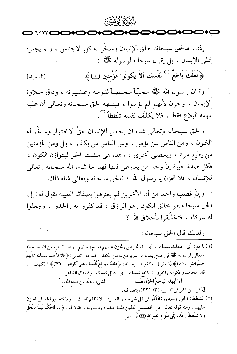 {لَعَلَّكَ بَاخِعٌ نَّفْسَكَ أَلاَّ يَكُونُواْ مُؤْمِنِينَ} [الشعراء: 3] .