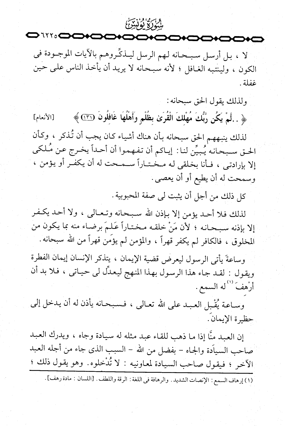 {أَن لَّمْ يَكُنْ رَّبُّكَ مُهْلِكَ القرى بِظُلْمٍ وَأَهْلُهَا غَافِلُونَ} [الأنعام: 131] .