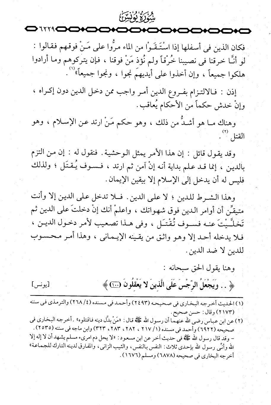 وهذا الشرط للدين؛ لا على الدين. فلا تدخل على الدين إلا وأنت متيقِّن أن أوامر الدين فوق شهواتك، واعلمْ أنك إنْ دخلتَ على الدين ثم تَخلَّيْتَ عنه فسوف تُقْتَل، وفي هذا تصعيب لأمر دخول الدين، فلا يدخله أحد إلا وهو واثق من يقينه الإيماني، وهذا أمر محسوب للدين لا ضد الدين.