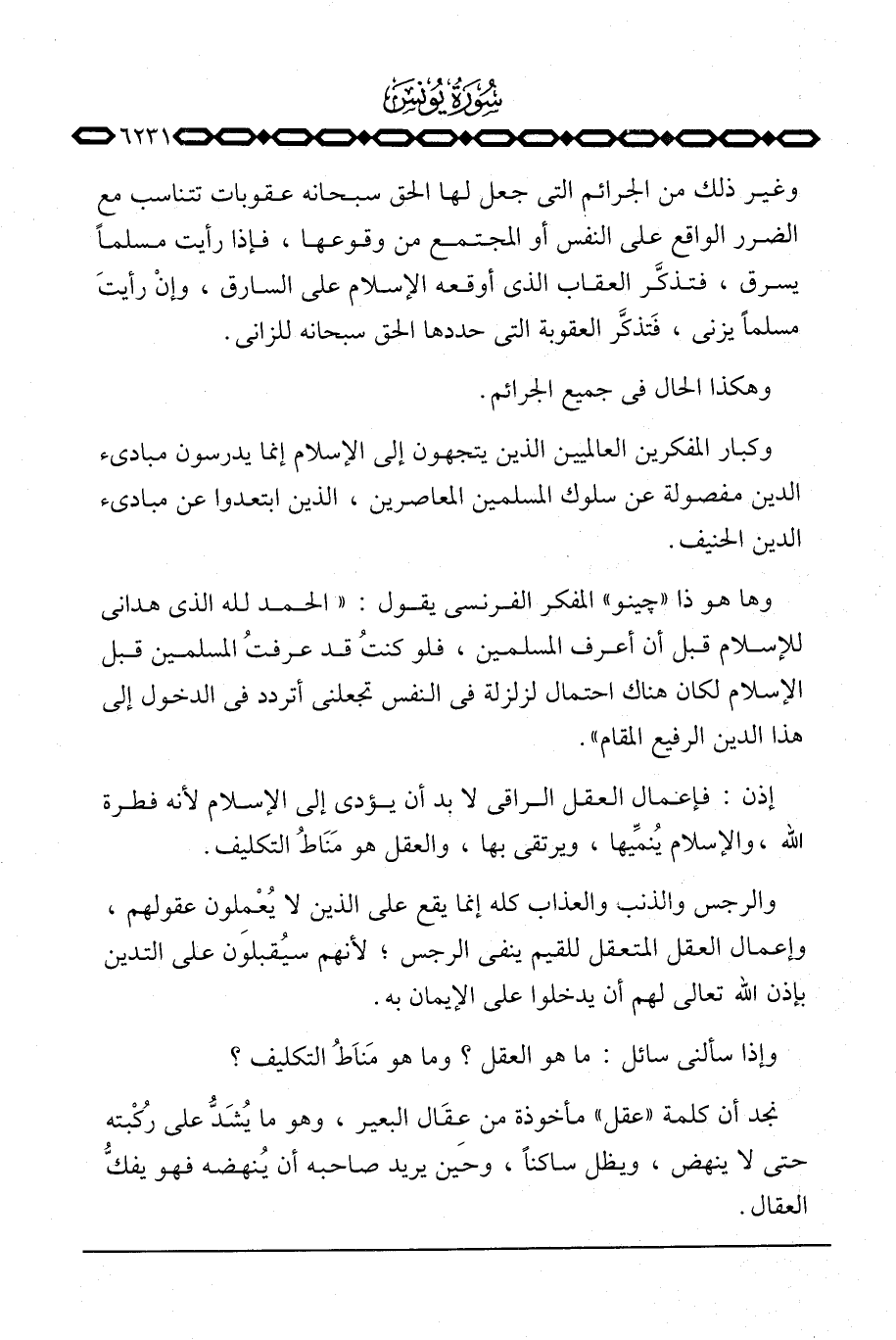 إذن: فإعمال العقل الراقي لا بد أن يؤدي إلى الإسلام لأنه فطرة الله، والإسلام يُنمِّيها، ويرتقي بها، والعقل هو مَنَاطُ التكليف.