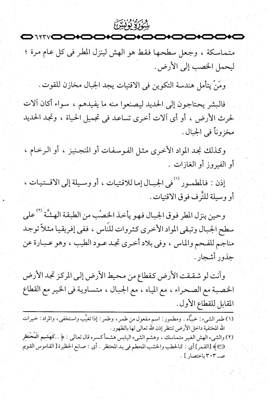 وأنت لو شققت الأرض كقطاع من محيط الأرض إلى المركز تجد الأرض الخصبة مع الصحراء، مع المياه، مع الجبال، متساوية في الخير مع القطاع المقابل للقطاع الأول.