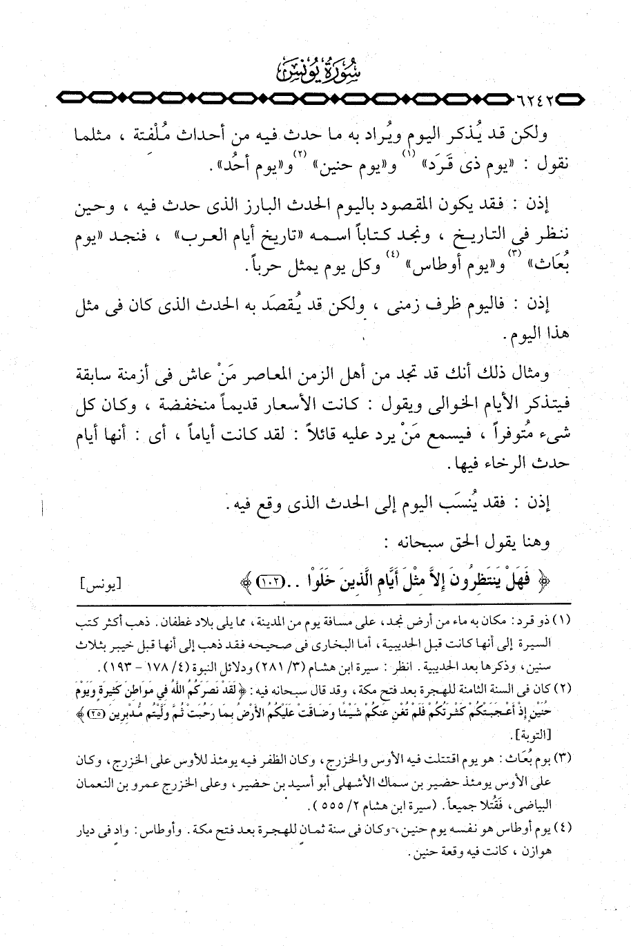 إذن: فقد يكون المقصود باليوم الحدث البارز الذي حدث فيه، وحين ننظر في التاريخ، ونجد كتاباً اسمه «تاريخ أيام العرب» ، فنجد «يوم بُعَاث» و «يوم أوطاس» وكل يوم يمثل حرباً.
