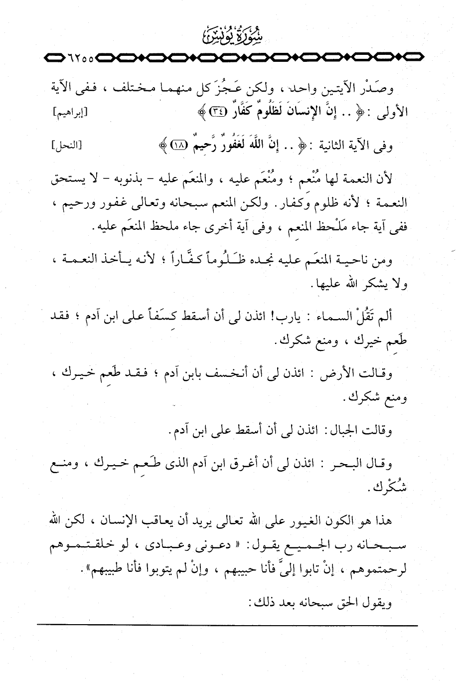 لأن النعمة لها مُنْعِم؛ ومُنْعَم عليه، والمنعَم عليه بذنوبه لا يستحق النعمة؛ لأنه ظلوم وكفار، ولكن المنعم سبحانه وتعالى غفور ورحيم، ففي آية جاء مَلْحظ المنعِم، وفي آية أخرى جاء ملحظ المنعَم عليه.