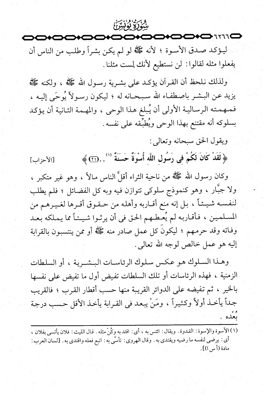 {لَّقَدْ كَانَ لَكُمْ فِي رَسُولِ الله أُسْوَةٌ حَسَنَةٌ} [الأحزاب: 21] .