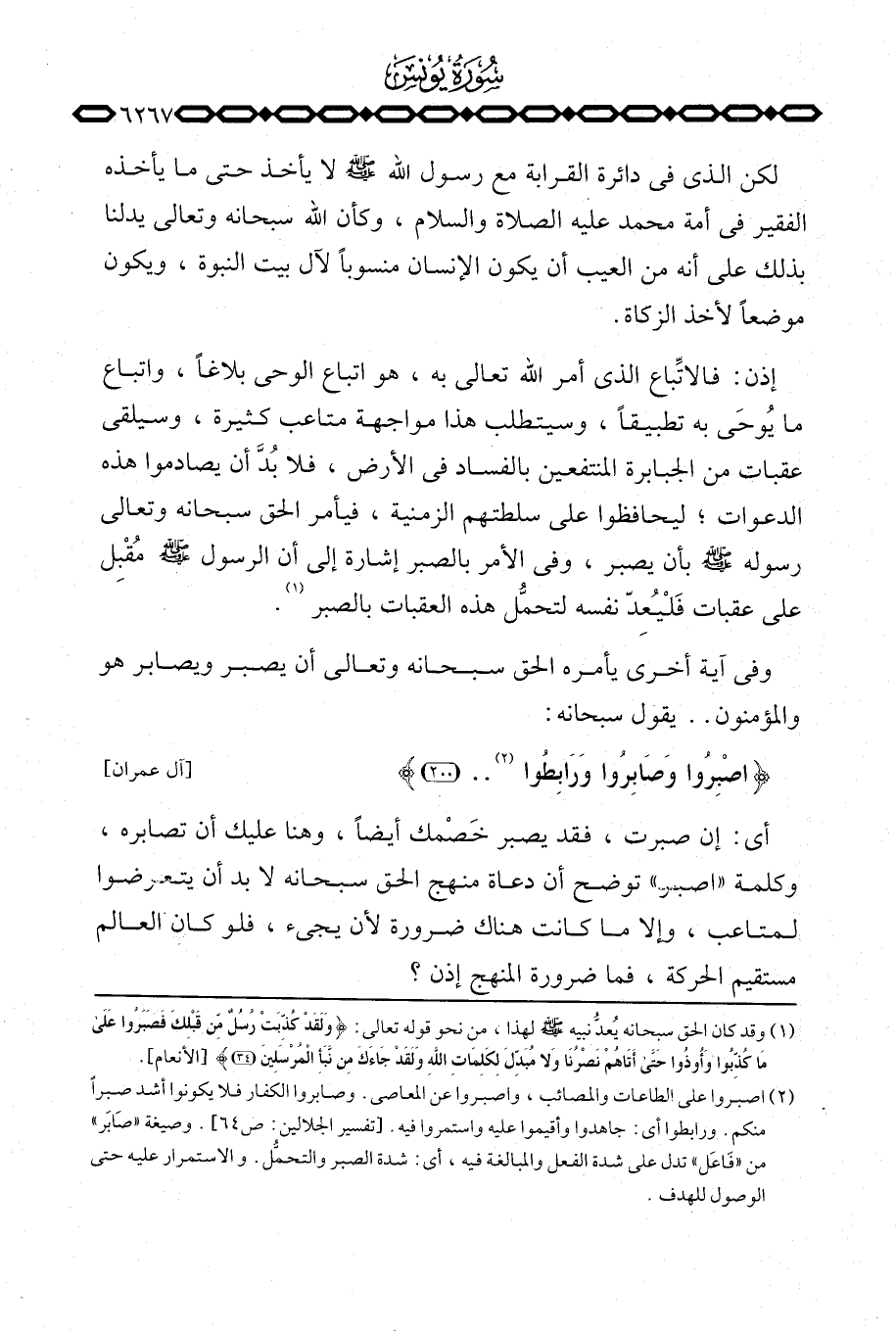 أي: إن صبرت، فقد يصبر خَصْمك أيضاً، وهنا عليك أن تصابره، وكلمة «اصبر» توضح أن دعاة منهج الحق سبحانه لا بد أن يتعرضوا لمتاعب، وإلا ما كانت هناك ضرورة لأن يجيء، فلو كان العالم مستقيم الحركة، فما ضرورة المنهج إذن؟