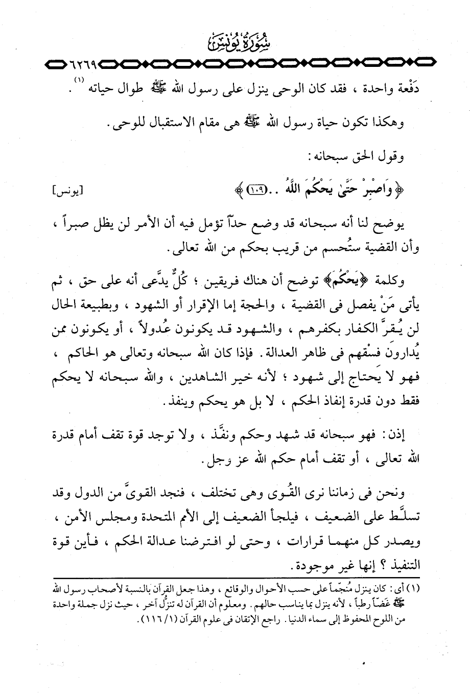 دَفْعة واحدة، فقد كان الوحي ينزل على رسول الله صَلَّى اللَّهُ عَلَيْهِ وَسَلَّم َ طوال حياته.