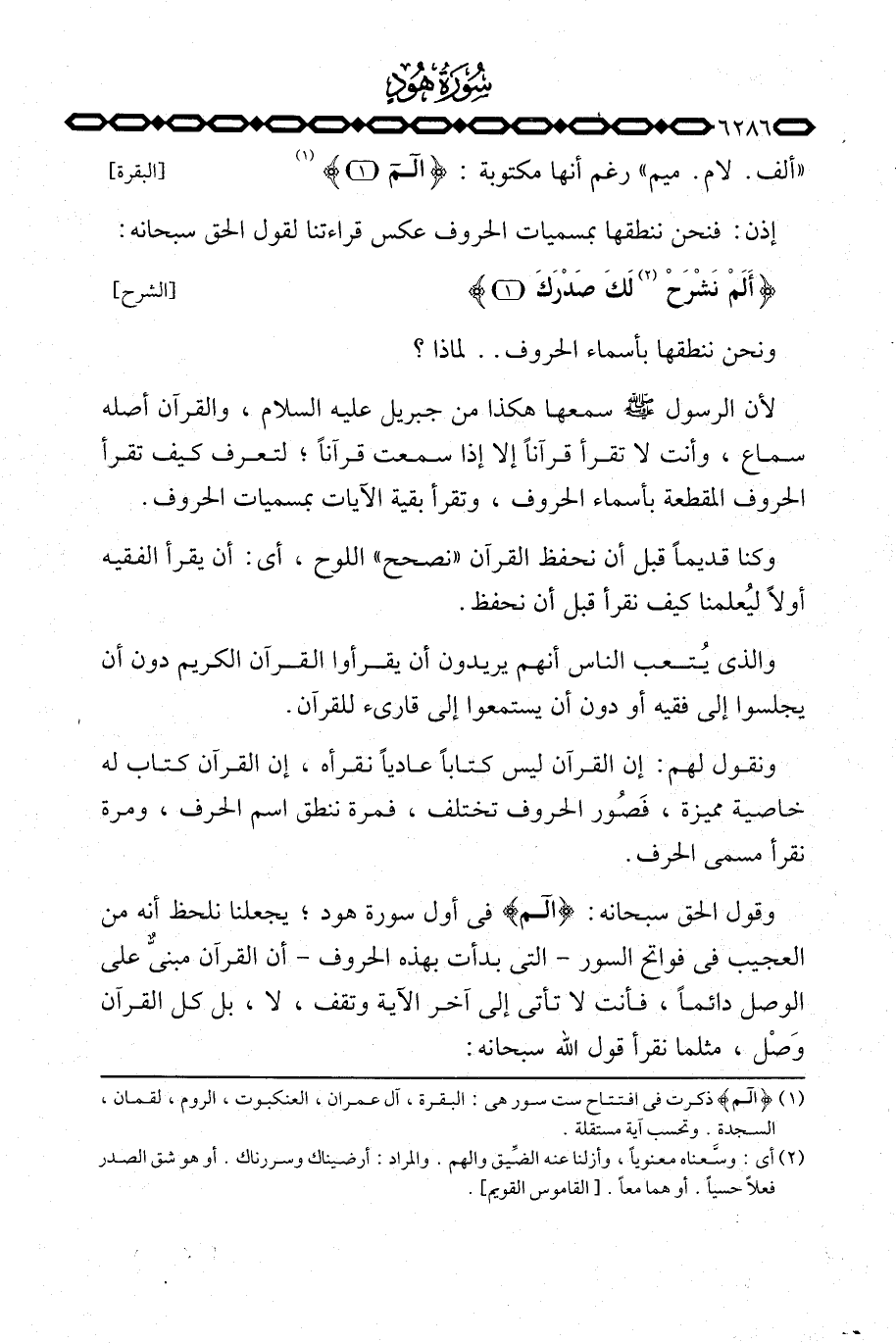 ألف. لام. ميم» رغم أنها مكتوبة: {الم} [البقرة: 1] .