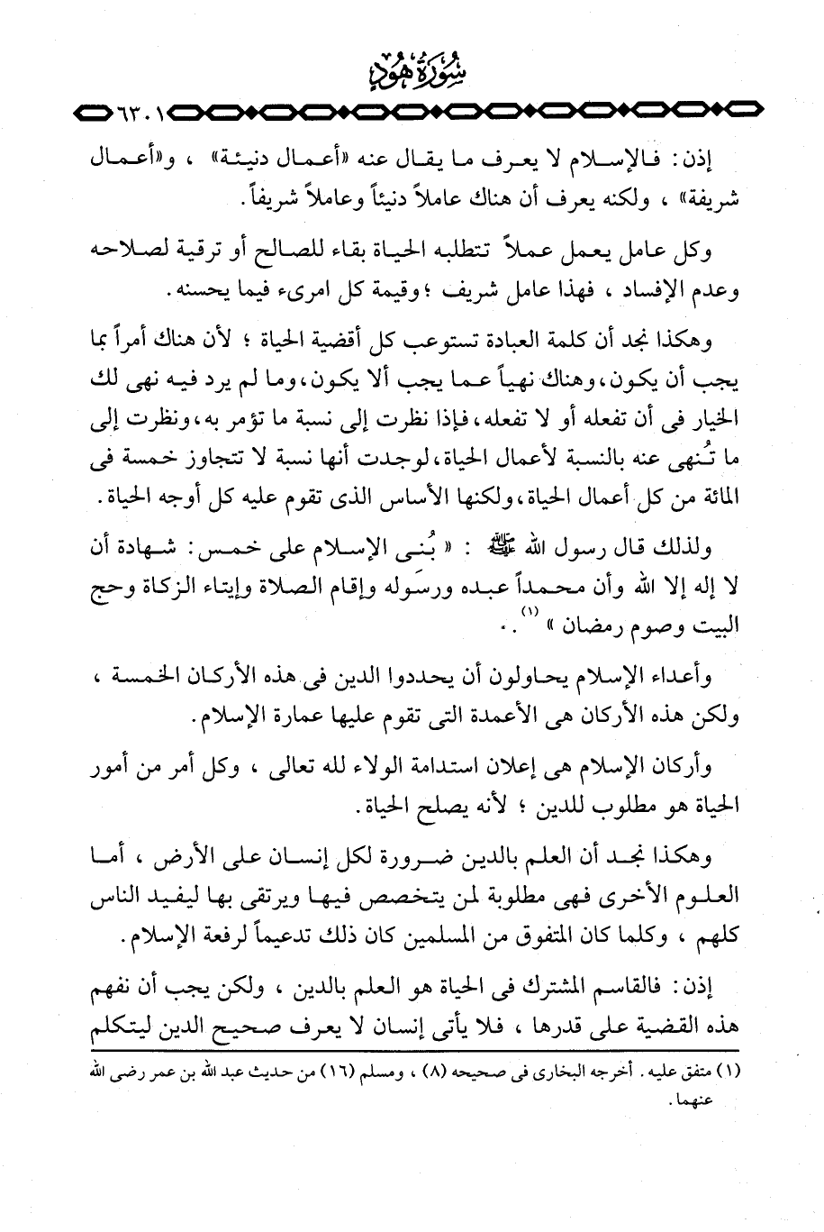ولذلك قال رسول الله صَلَّى اللَّهُ عَلَيْهِ وَسَلَّم َ: «بُني الإسلام على خمس: شهادة أن لا إله إلا الله وأن محمداً عبده ورسوله وإقام الصلاة وإيتاء الزكاة وحج البيت وصوم رمضان» .