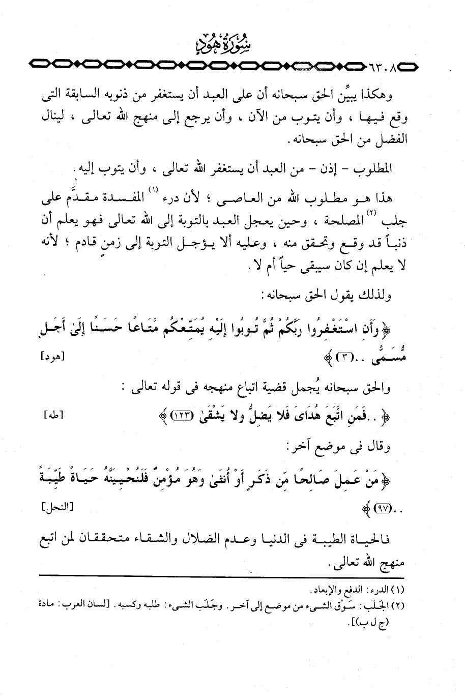 {وَأَنِ استغفروا رَبَّكُمْ ثُمَّ توبوا إِلَيْهِ يُمَتِّعْكُمْ مَّتَاعاً حَسَناً إلى أَجَلٍ مُّسَمًّى} [هود: 3] .