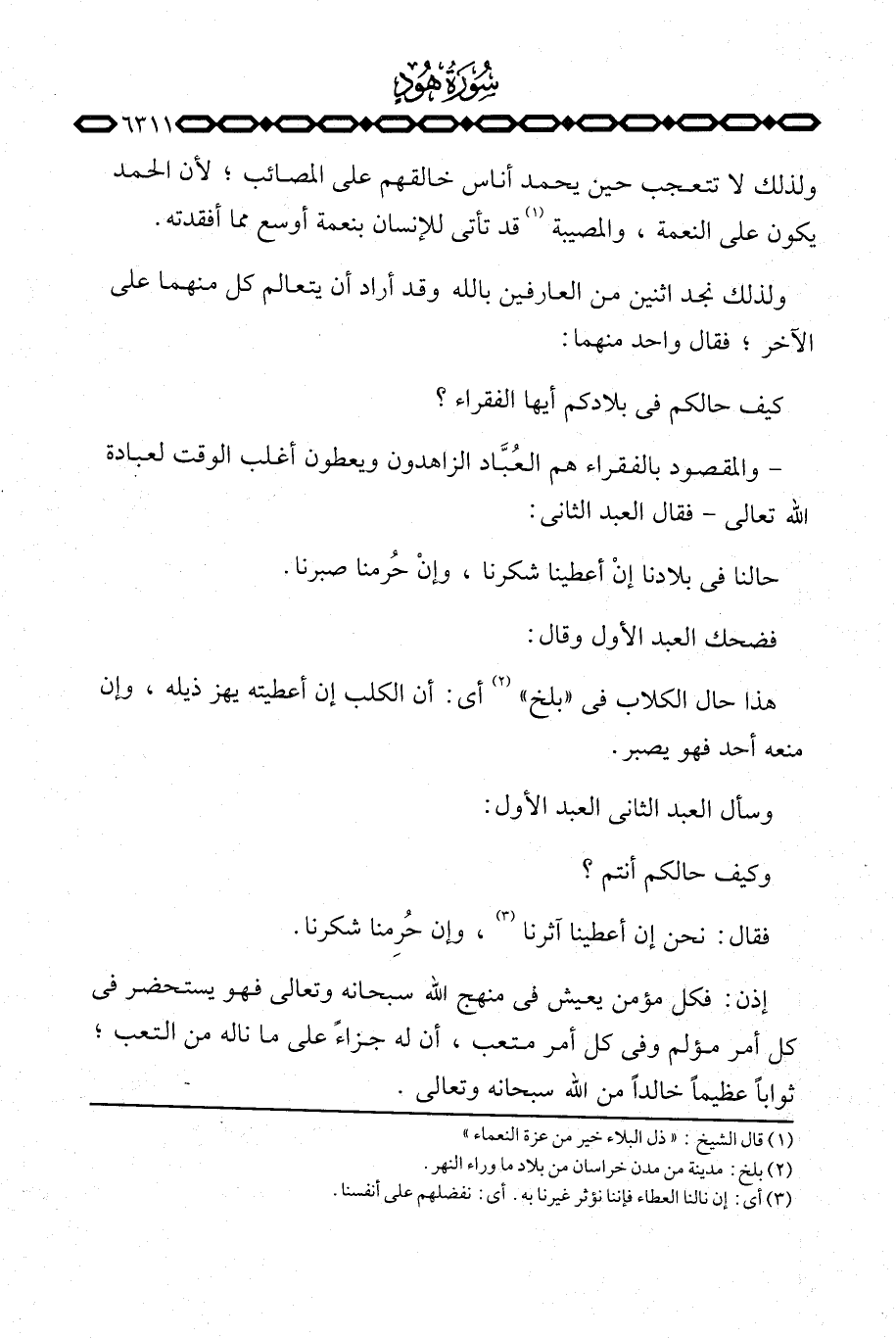 ولذلك لا تتعجب حين يحمد أناس خالقهم على المصائب؛ لأن الحمد يكون على النعمة، والمصيبة قد تأتي للإنسان بنعمة أوسع مما أفقدته.
