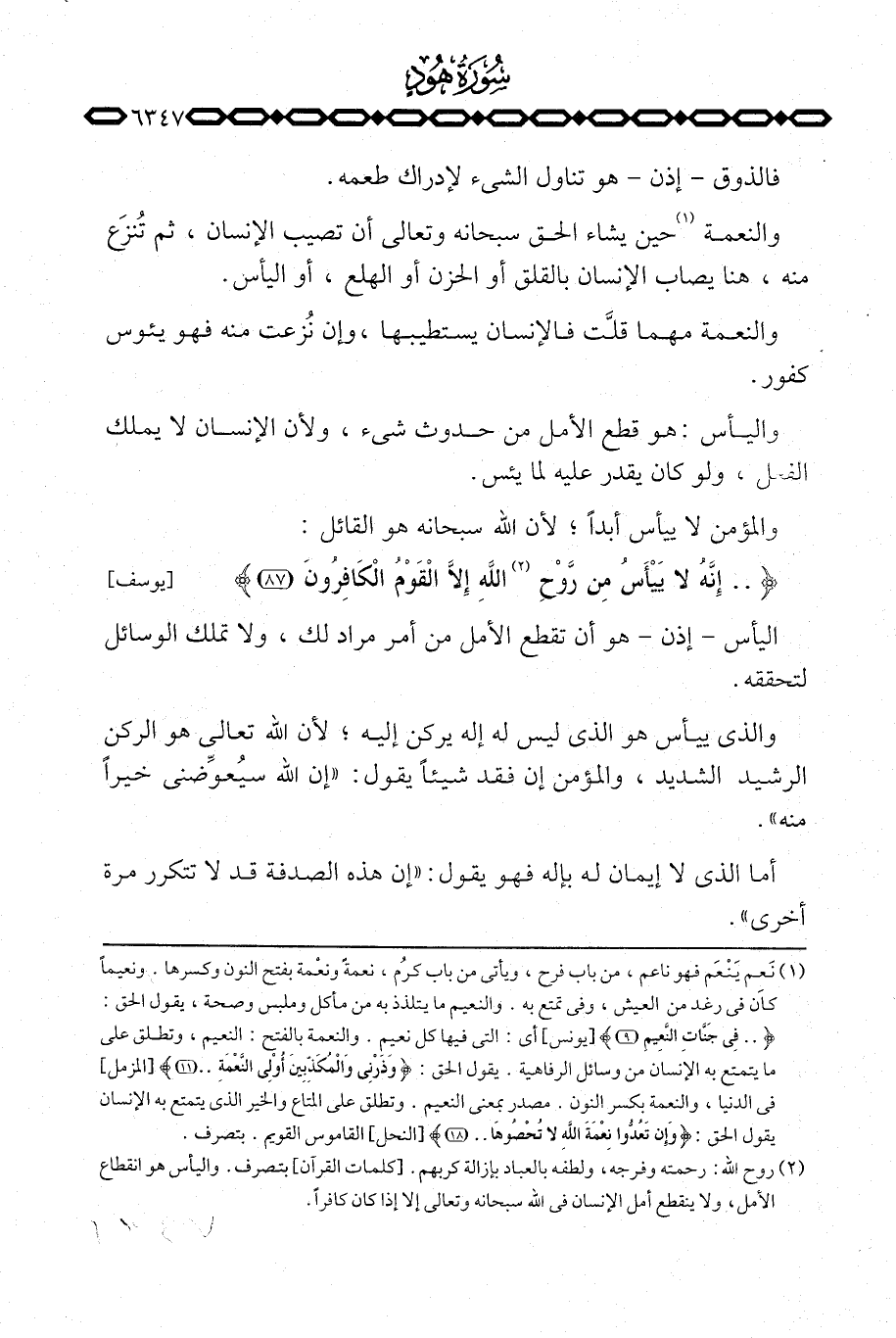 والنعمة مهما قلَّت فالإنسان يستطيبها، وإن نُزعت منه فهو يئوس كفور.