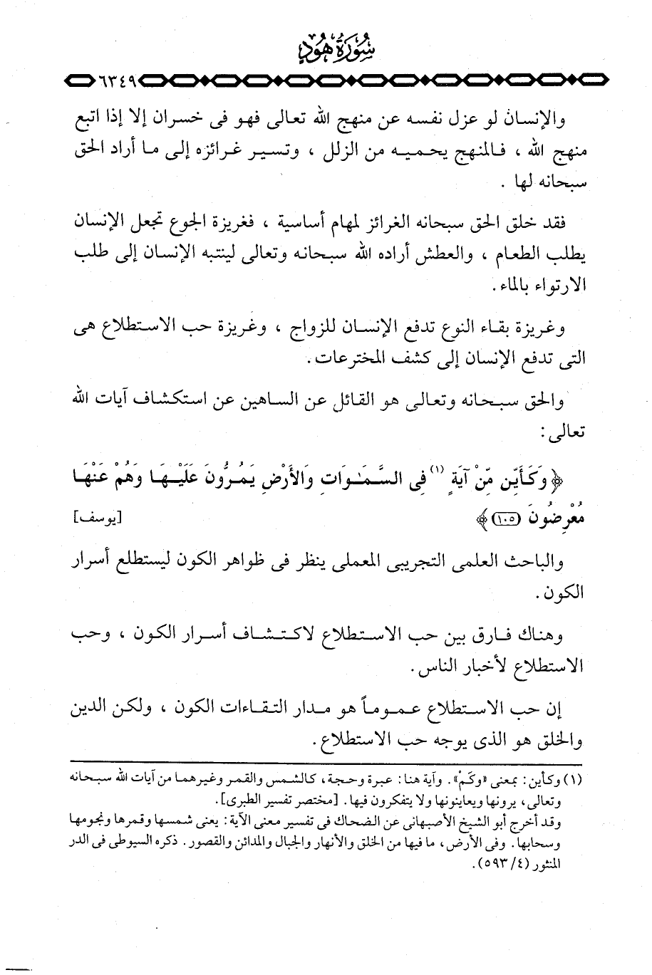 إن حب الاستطلاع عموماً هو مدار التقاءات الكون، ولكن الدين والخلق هو الذي يوجه حب الاستطلاع.