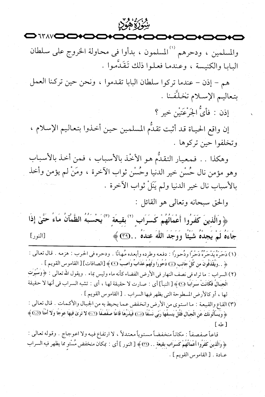 هم إذن عندما تركوا سلطان البابا تقدموا، ونحن حين تركنا العمل بتعاليم الإسلام تخلَّفنا.