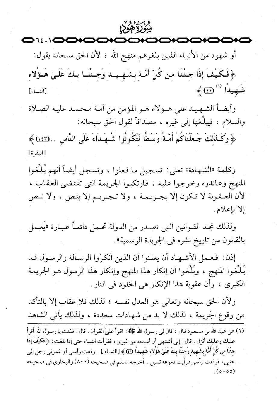 وكلمة «الشهادة» تعني: تسجيل ما فعلوا، وتسجل أيضاً أنهم بُلِّغوا المنهج وعاندوه وخرجوا عليه، فارتكبوا الجريمة التي تقتضي العقاب، لأن العقوبة لا تكون إلا بجريمة، ولا تجريم إلا بنص، ولا نص إلا بإعلام.