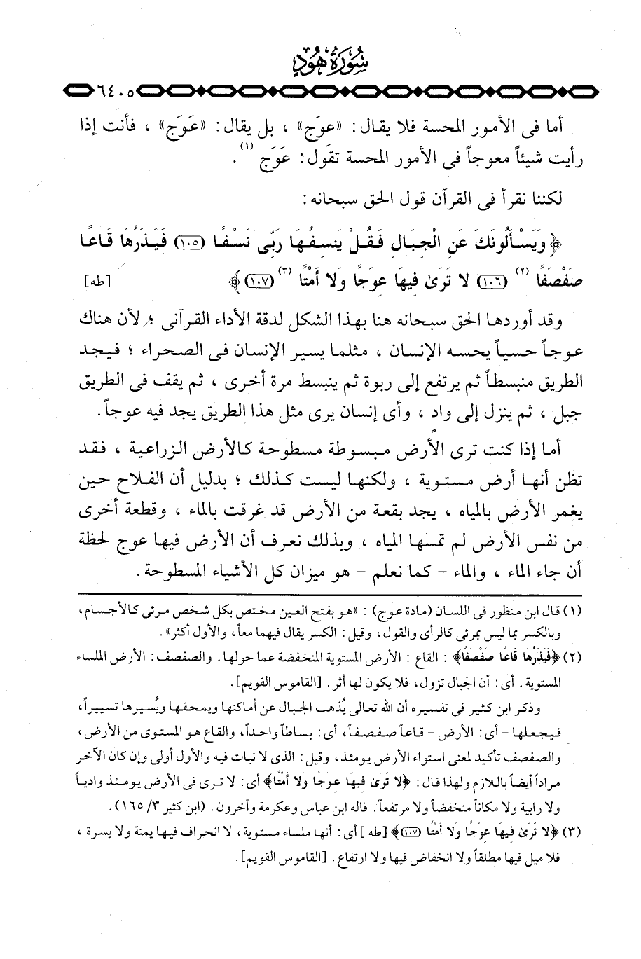 {وَيَسْأَلُونَكَ عَنِ الجبال فَقُلْ يَنسِفُهَا رَبِّي نَسْفاً فَيَذَرُهَا قَاعاً صَفْصَفاً لاَّ ترى فِيهَا عِوَجاً ولا أَمْتاً} [طه: 105107] .