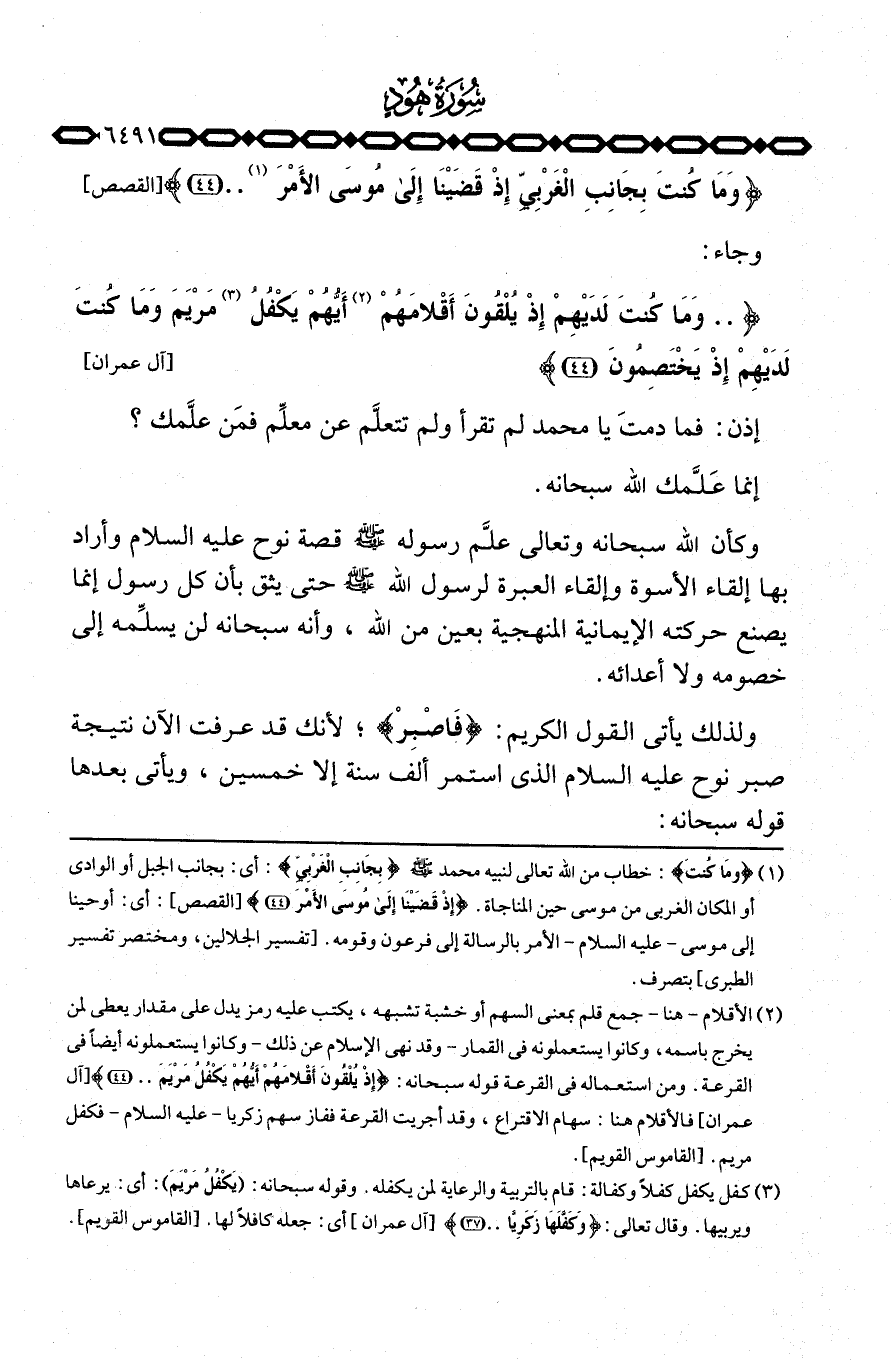 {وَمَا كُنتَ لَدَيْهِمْ إِذْ يُلْقُون أَقْلاَمَهُمْ أَيُّهُمْ يَكْفُلُ مَرْيَمَ وَمَا كُنْتَ لَدَيْهِمْ إِذْ يَخْتَصِمُونَ} [آل عمران: 44] .