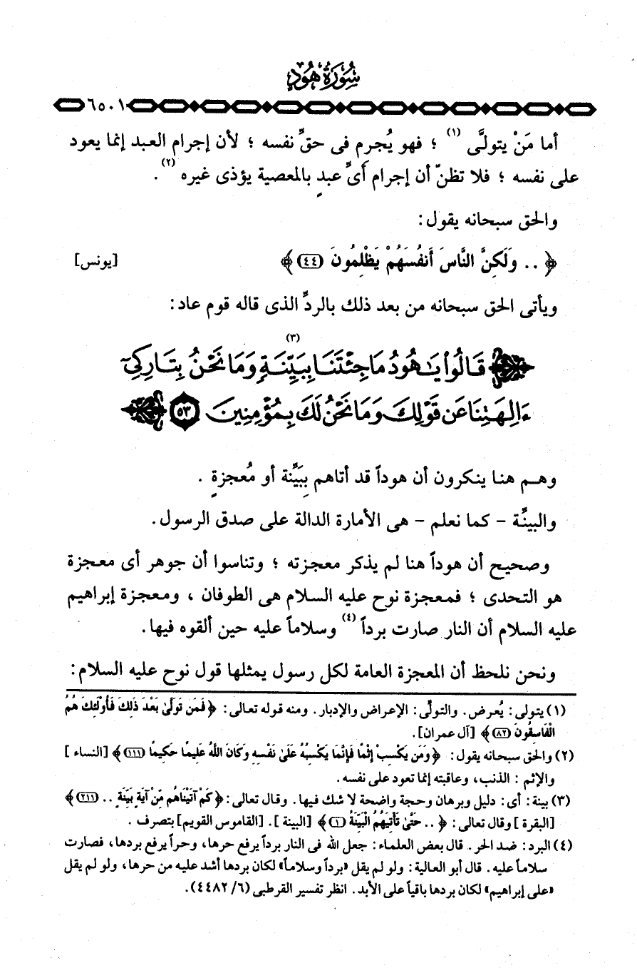 وصحيح أن هوداً هنا لم يذكر معجزته؛ وتناسوا أن جوهر أي معجزة هو التحدي؛ فمعجزة نوح عليه السلام هي الطوفان، ومعجزة إبراهيم عليه السلام أن النار صارت برداً وسلاماً عليه حين ألقوه فيها.