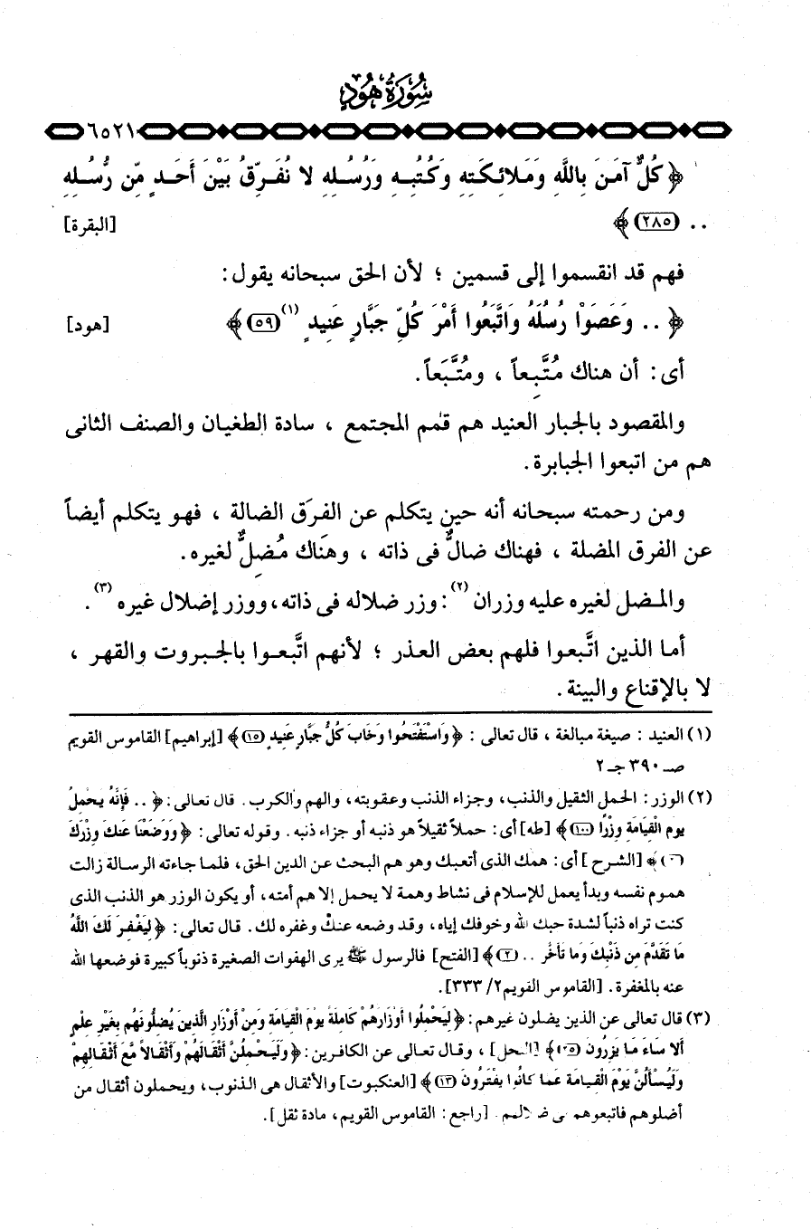 {وَعَصَوْاْ رُسُلَهُ واتبعوا أَمْرَ كُلِّ جَبَّارٍ عَنِيدٍ} [هود: 59] .