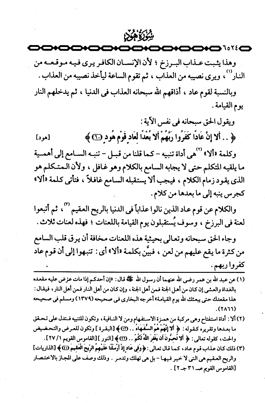 {ألا إِنَّ عَاداً كَفَرُواْ رَبَّهُمْ أَلاَ بُعْداً لِّعَادٍ قَوْمِ هُودٍ} [هود: 60] .