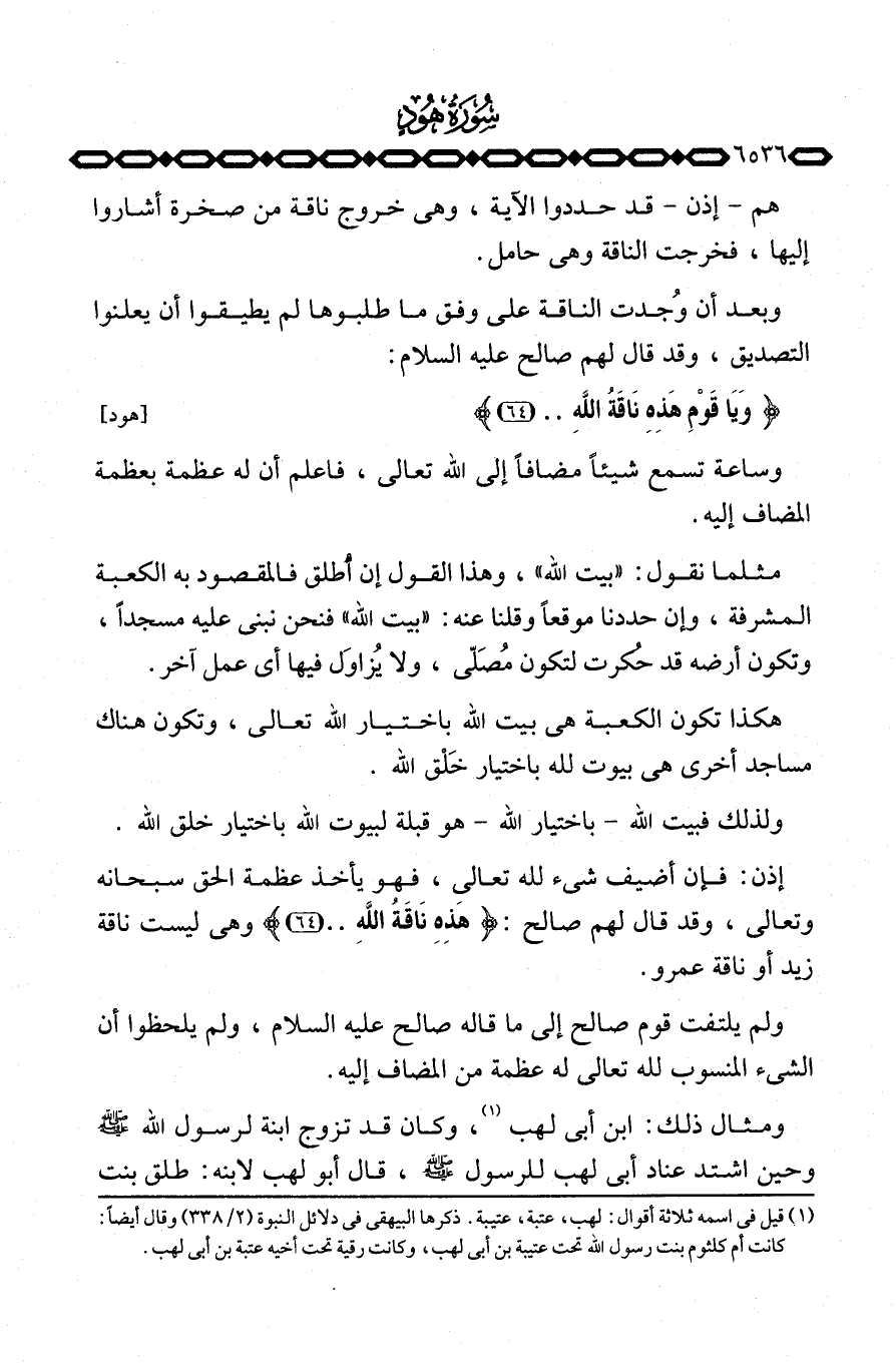 إذن: فإن أضيف شيء لله تعالى، فهو يأخذ عظمة الحق سبحانه وتعالى، وقد قال لهم صالح: {هذه نَاقَةُ الله} [هود: 64] وهي ليست ناقة زيد أو ناقة عمرو.