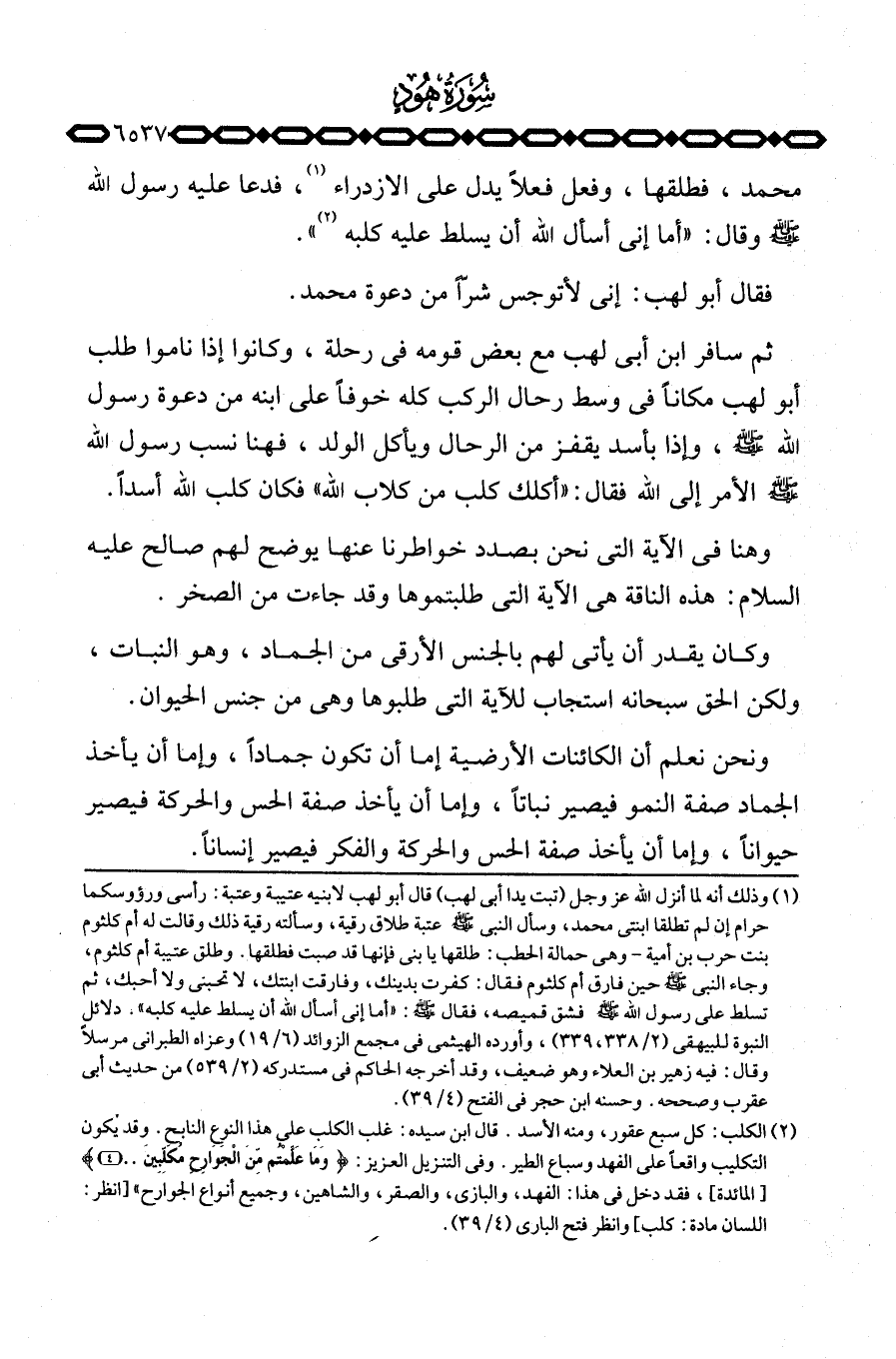 ثم سافر ابن أبي لهب مع بعض قومه في رحلة، وكانوا إذا ناموا طلب أبو لهب مكاناً في وسط رحال الركب كله خوفاً على ابنه من دعوة رسول الله صَلَّى اللَّهُ عَلَيْهِ وَسَلَّم َ، وإذا بأسد يقفز من الرحال ويأكل الولد» ، فهنا نسب رسول الله صَلَّى اللَّهُ عَلَيْهِ وَسَلَّم َ الأمر إلى الله فقال: «أكلك كلب من كلاب الله» فكان كلب الله أسداً.