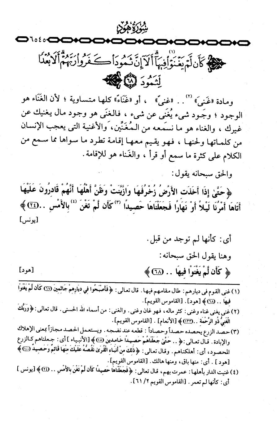 {كَأَن لَّمْ يَغْنَوْاْ فِيهَآ} [هود: 68] .