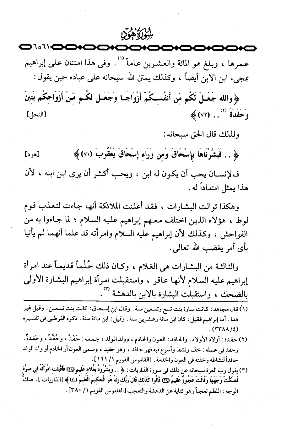 عمرها، وبلغ هو المائة والعشرين عاماً. وفي هذا امتنان على إبراهيم بمجيء ابن الابن أيضاً، وكذلك يمتن الله سبحانه على عباده حين يقول: