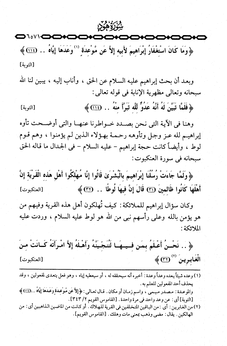 {وَمَا كَانَ استغفار إِبْرَاهِيمَ لأَبِيهِ إِلاَّ عَن مَّوْعِدَةٍ وَعَدَهَآ إِيَّاهُ} [التوبة: 114] .