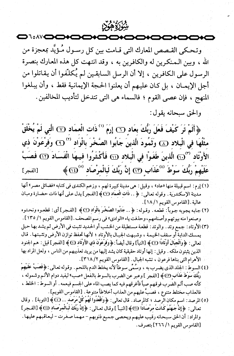 {أَلَمْ تَرَ كَيْفَ فَعَلَ رَبُّكَ بِعَادٍ إِرَمَ ذَاتِ العماد التي لَمْ يُخْلَقْ مِثْلُهَا فِي البلاد وَثَمُودَ الذين جَابُواْ الصخر بالواد وَفِرْعَوْنَ ذِى الأوتاد الذين طَغَوْاْ فِي البلاد فَأَكْثَرُواْ فِيهَا الفساد فَصَبَّ عَلَيْهِمْ رَبُّكَ سَوْطَ عَذَابٍ إِنَّ رَبَّكَ لبالمرصاد} [الفجر: 614] .