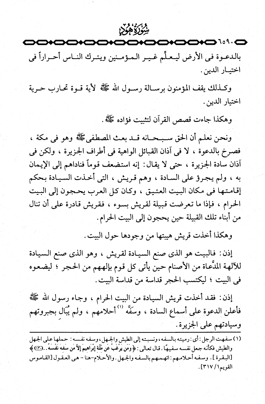 إذن: فقد أخذت قريش السيادة من البيت الحرام، وجاء رسول الله صَلَّى اللَّهُ عَلَيْهِ وَسَلَّم َ فأعلن الدعوة على أسماع السادة، وسَفَّه أحلامهم، ولم يُبَالِ بجبروتهم وسيادتهم على الجزيرة.