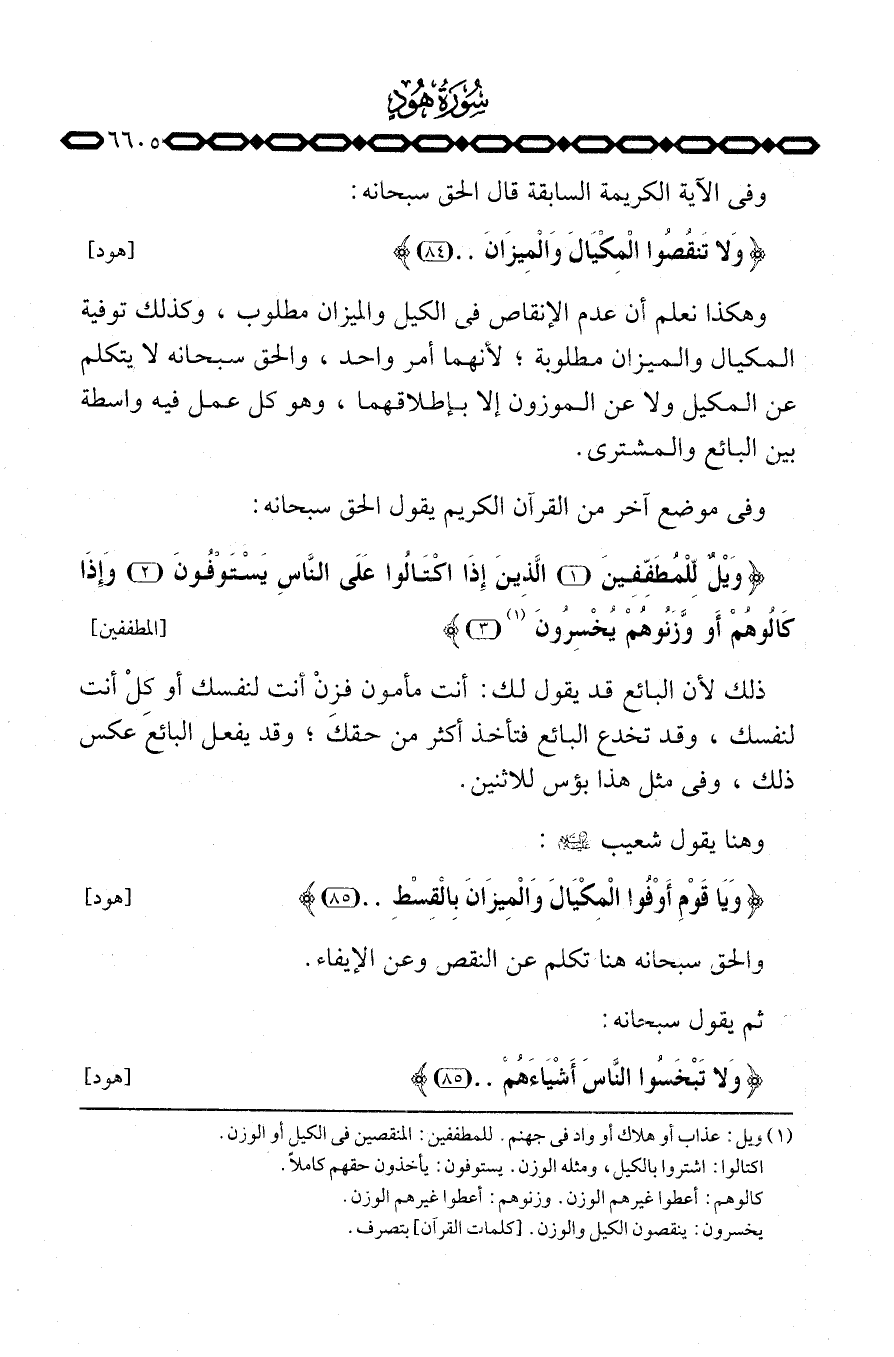 {وَلاَ تَنقُصُواْ المكيال والميزان} [هود: 84] .