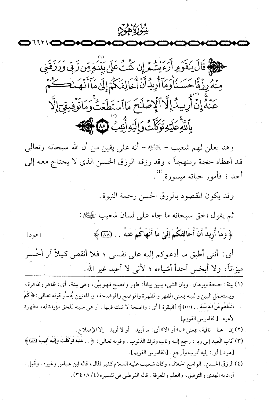 وهنا يعلن لهم شعيب عليه السلام أنه على يقين من أن الله سبحانه وتعالى قد أعطاه حجة ومنهجاً، وقد رزقه الرزق الحسن الذي لا يحتاج معه إلى أحد؛ فامور حياته ميسورة.