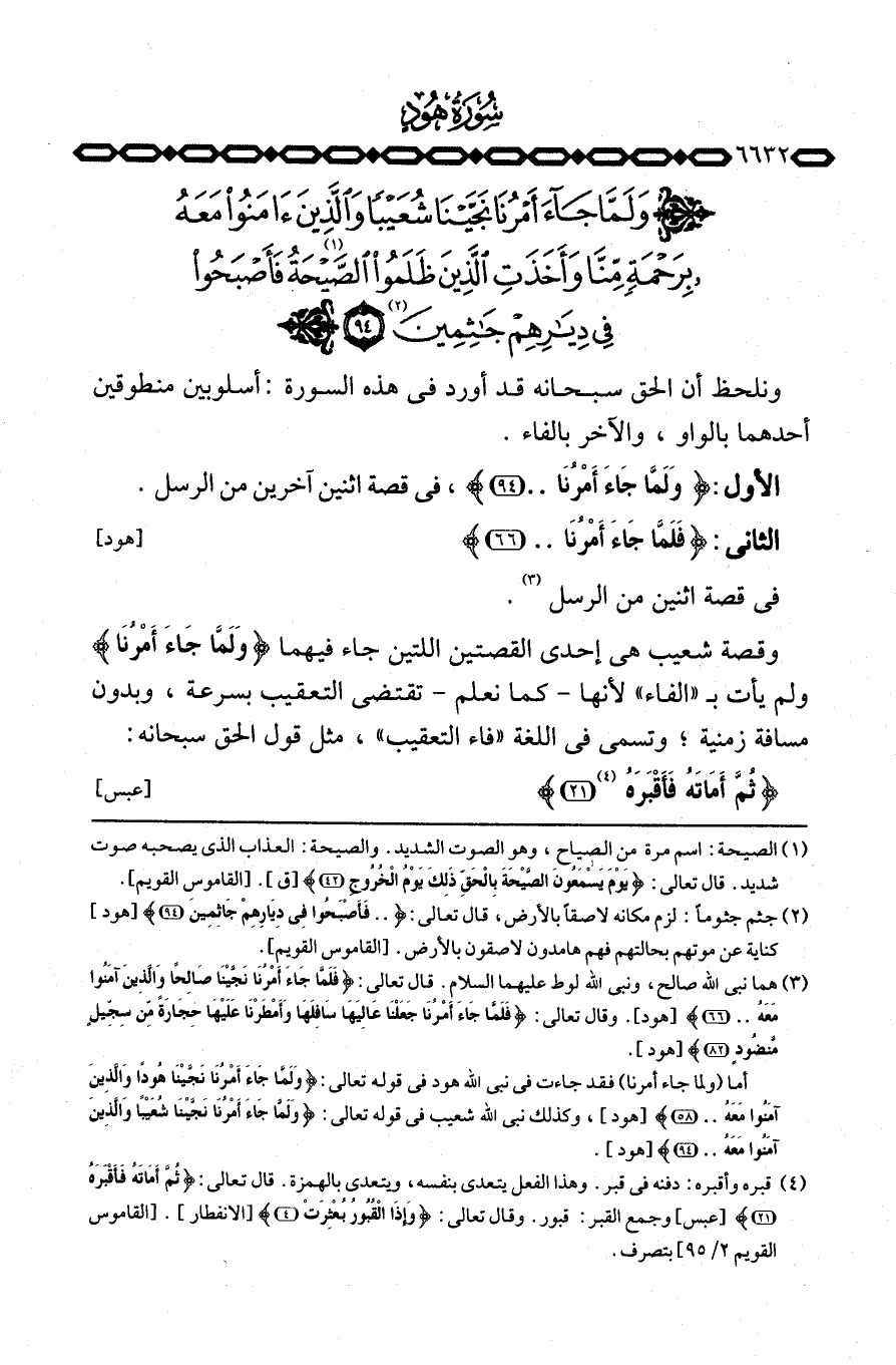 وقصة شعيب هي إحدى القصتين اللتين جاء فيهما {وَلَمَّا جَآءَ أَمْرُنَا} ولم يأت ب «الفاء» لأنها كما نعلم تقتضي التعقيب بسرعة، وبدون مسافة زمنية؛ وتسمى في اللغة «فاء التعقيب» ، مثل قول الحق سبحانه: