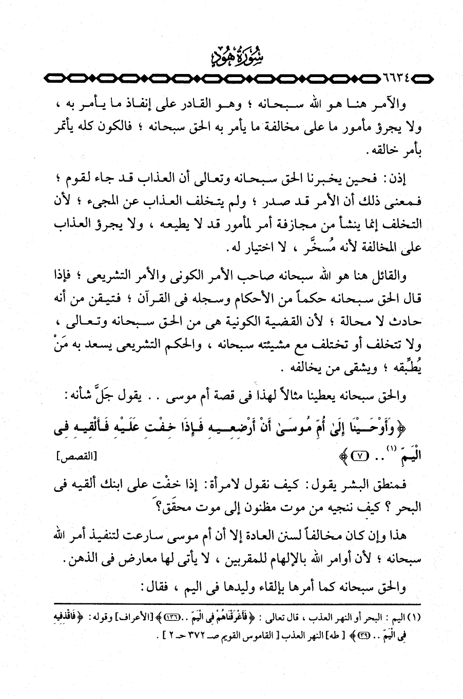 هذا وإن كان مخالفاً لسنن العادة إلا أن أم موسى سارعت لتنفيذ أمر الله سبحانه؛ لأن أوامر الله بالإلهام للمقربين، لا يأتي لها معارض في الذهن.