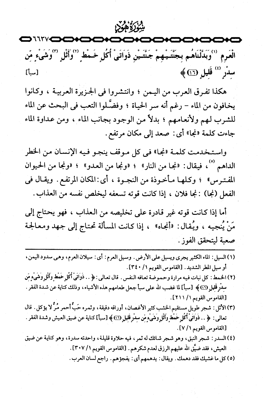 العرم وَبَدَّلْنَاهُمْ بِجَنَّتَيْهِمْ جَنَّتَيْنِ ذَوَاتَىْ أُكُلٍ خَمْطٍ وَأَثْلٍ وَشَيْءٍ مِّن سِدْرٍ قَلِيلٍ} [سبأ: 1516] .
