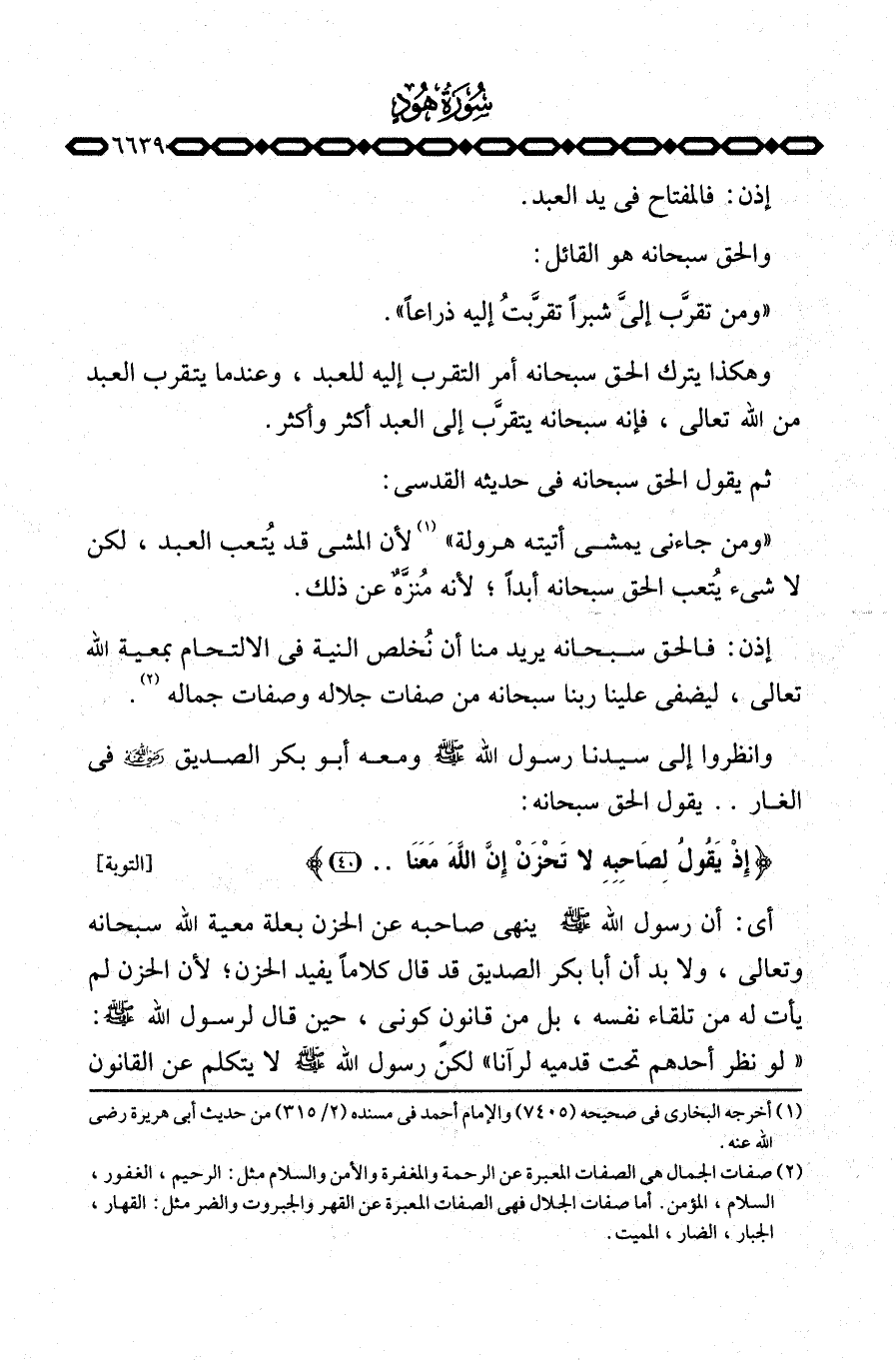 «ومن تقرَّب إليَّ شبراً تقرَّبتُ إليه ذراعاً» .