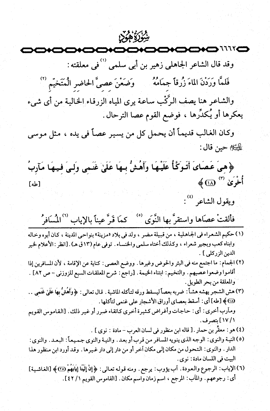 {هِيَ عَصَايَ أَتَوَكَّأُ عَلَيْهَا وَأَهُشُّ بِهَا على غَنَمِي وَلِيَ فِيهَا مَآرِبُ أخرى} [طه: 18] .