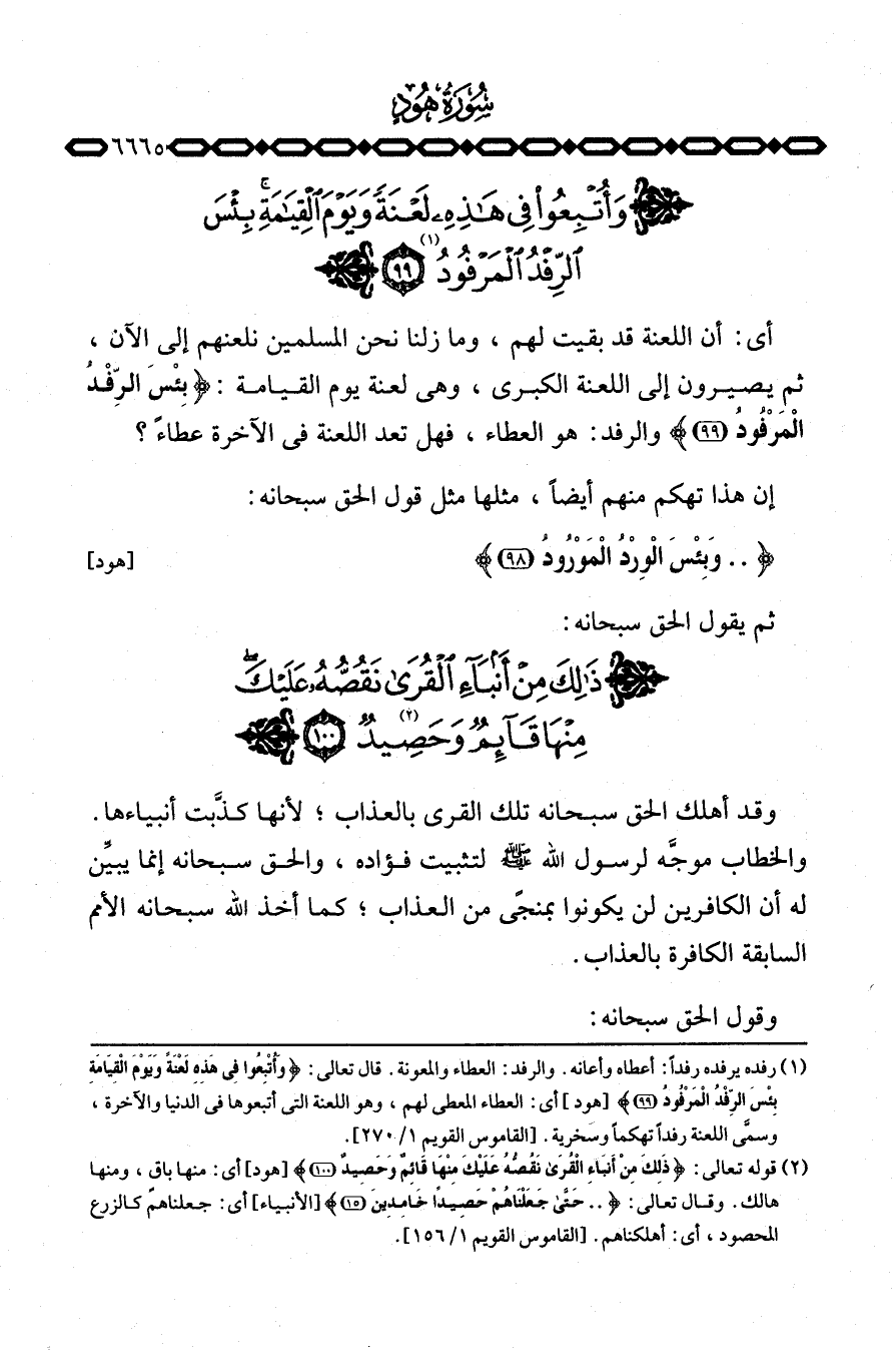أي: أن اللعنة قد بقيت لهم، وما زلنا نحن المسلمين نلعنهم إلى الآن، ثم يصيرون إلى اللعنة الكبرى، وهي لعنة يوم القيامة: {بِئْسَ الرفد المرفود} [هود: 99] والرفد: هو الغطاء، فهل تعد اللعنة في الآخرة عطاءً؟