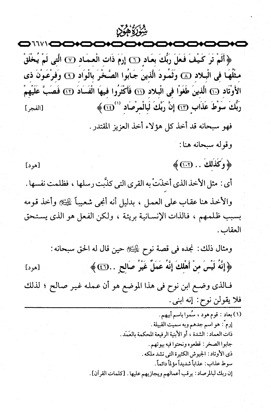 {أَلَمْ تَرَ كَيْفَ فَعَلَ رَبُّكَ بِعَادٍ إِرَمَ ذَاتِ العماد التي لَمْ يُخْلَقْ مِثْلُهَا فِي البلاد وَثَمُودَ الذين جَابُواْ الصخر بالواد وَفِرْعَوْنَ ذِى الأوتاد الذين طَغَوْاْ فِي البلاد فَأَكْثَرُواْ فِيهَا الفساد فَصَبَّ عَلَيْهِمْ رَبُّكَ سَوْطَ عَذَابٍ إِنَّ رَبَّكَ لبالمرصاد} [الفجر: 614] .