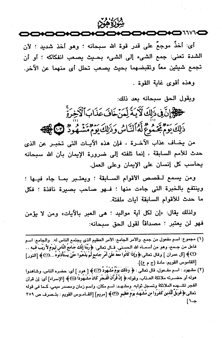 من يخاف عذاب الآخرة، فإن هذه الآيات التي تخبر عن الذي حدث للأمم السابقة، إنما تلفته إلى ضرورة الإيمان بأن الله سبحانه يحاسب كل إنسان على الإيمان وعلى العمل.