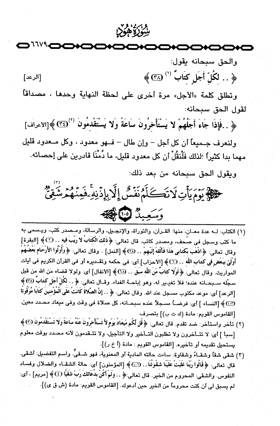 وتطلق كلمة «الأجل» مرة أخرى على لحظة النهاية وحدها، مصداقاً لقول الحق سبحانه: