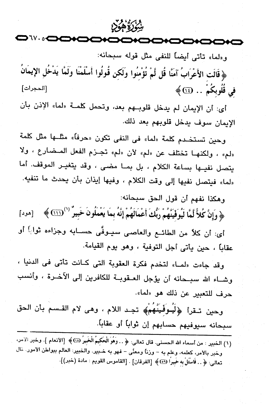 {وَإِنَّ كُلاًّ لَّمَّا لَيُوَفِّيَنَّهُمْ رَبُّكَ أَعْمَالَهُمْ إِنَّهُ بِمَا يَعْمَلُونَ خَبِيرٌ} [هود: 111] .