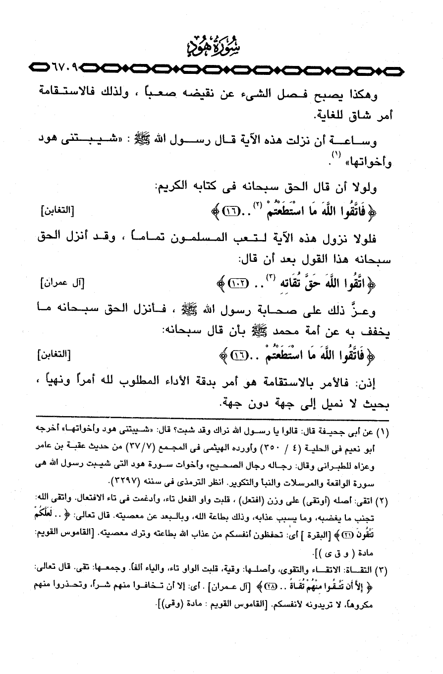 وساعة أن نزلت هذه الآية قال رسول الله صَلَّى اللَّهُ عَلَيْهِ وَسَلَّم َ: «شيبتني هود وأخواتها» .