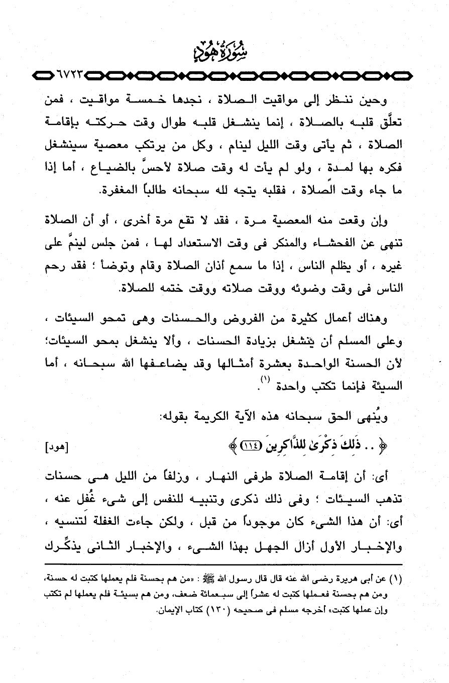 وحين ننظر إلى مواقيت الصلاة، نجدها خمسة مواقيت، فمن تعلَّق قلبه بالصلاة، إنما ينشغل قلبه طوال وقت حركته بإقامة الصلاة، ثم يأتي وقت الليل لينام، وكل من يرتكب معصية سينشغل فكره بها لمدةٍ، ولو لم يأت له وقت صلاة لأحسَّ بالضياع، أما إذا ما جاء وقت الصلاة فقلبه يتجه لله سبحانه طالباً المغفرة.