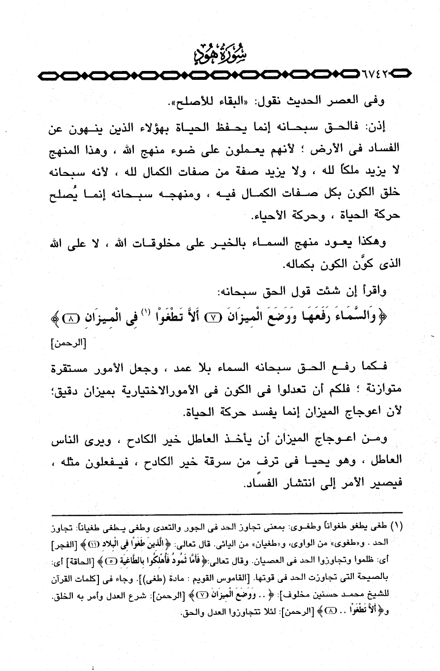 {والسمآء رَفَعَهَا وَوَضَعَ الميزان أَلاَّ تَطْغَوْاْ فِي الميزان} [الرحمن: 78] .
