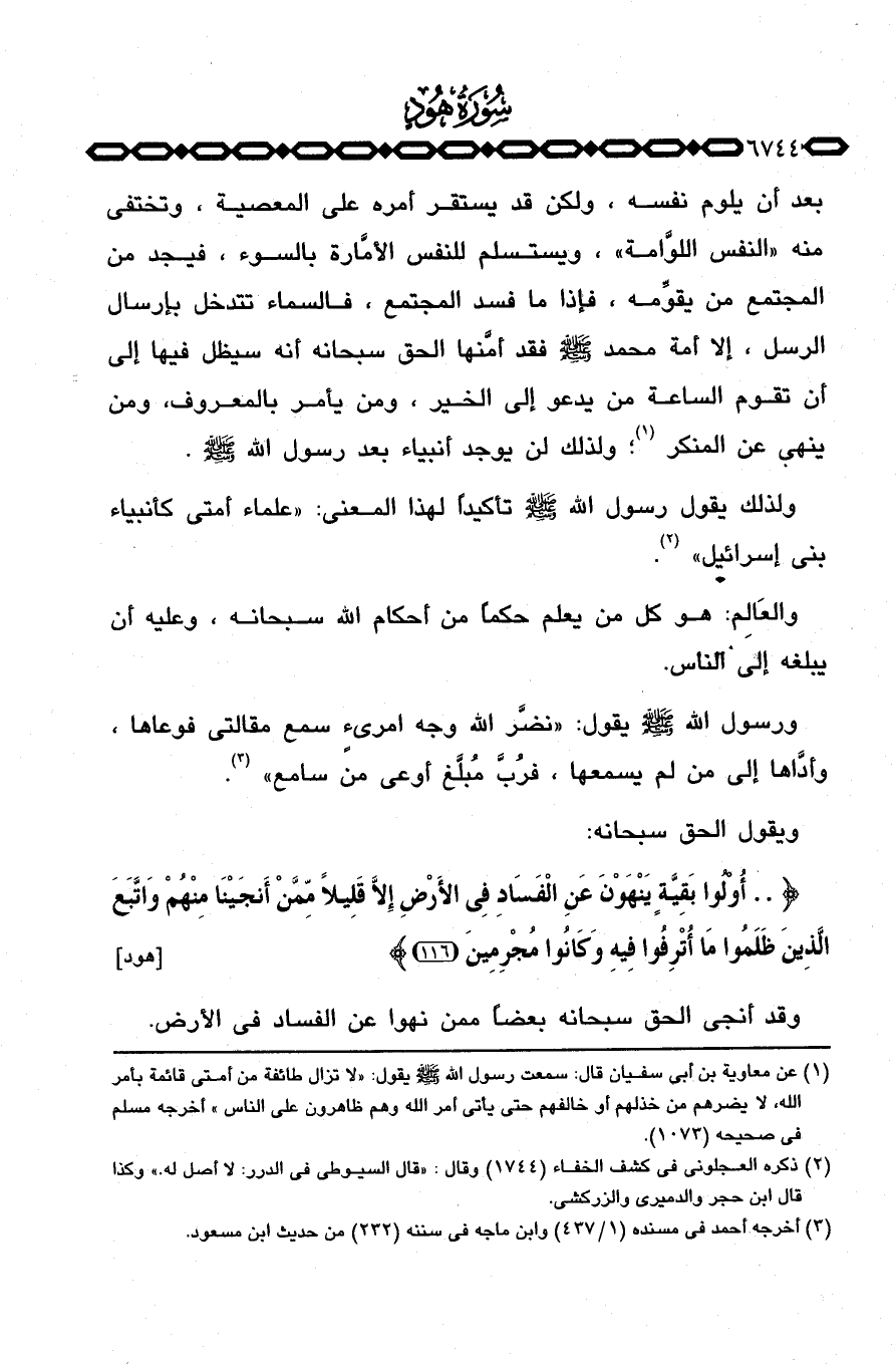 ولذلك يقول رسول الله صَلَّى اللَّهُ عَلَيْهِ وَسَلَّم َ تأكيداً لهذا المعنى: «علماء أمتي كأنبياء بني إسرائيل» .