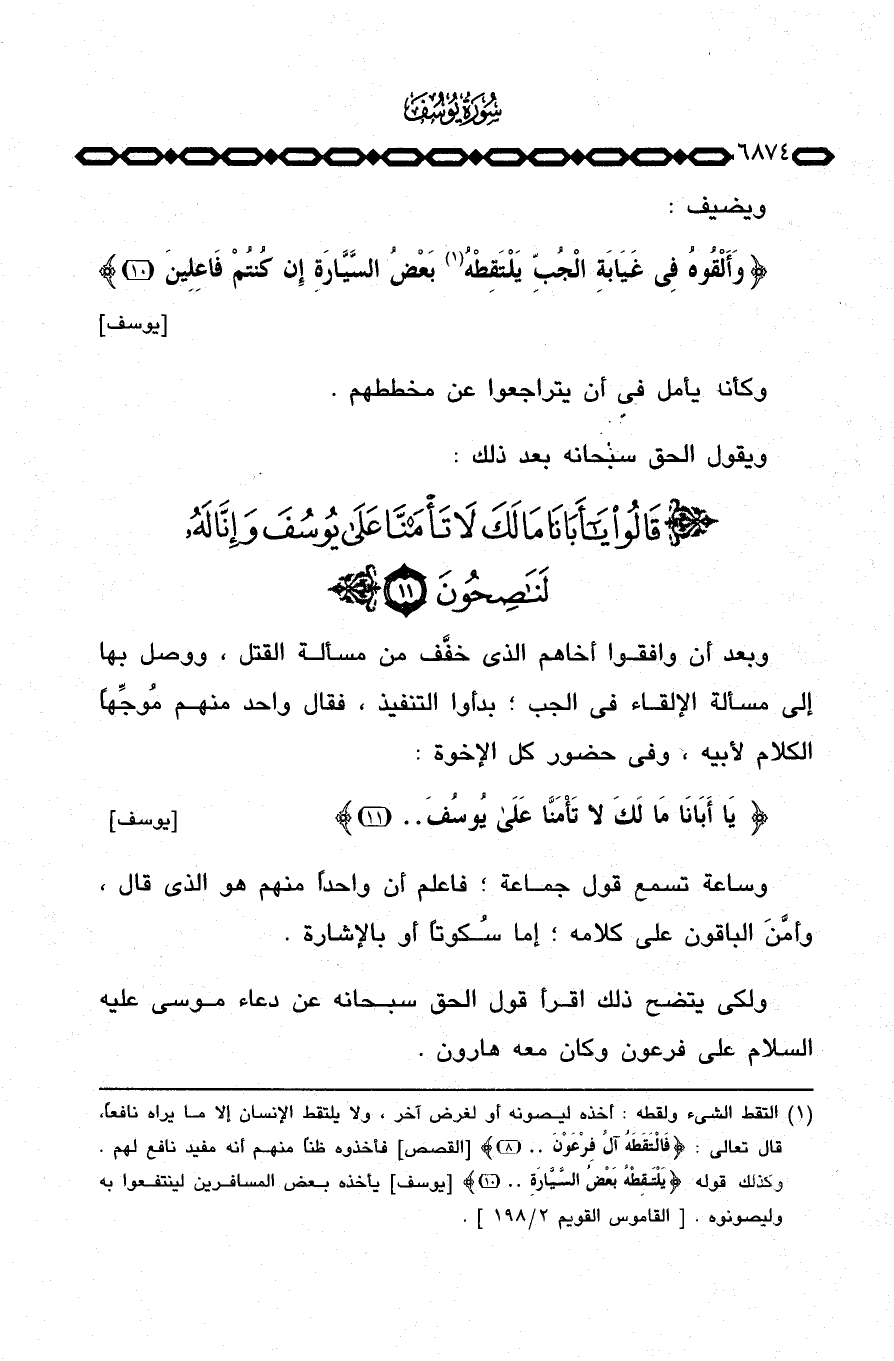 {وَأَلْقُوهُ فِي غيابت الجب يَلْتَقِطْهُ بَعْضُ السيارة إِن كُنتُمْ فَاعِلِينَ} [يوسف: 10] .