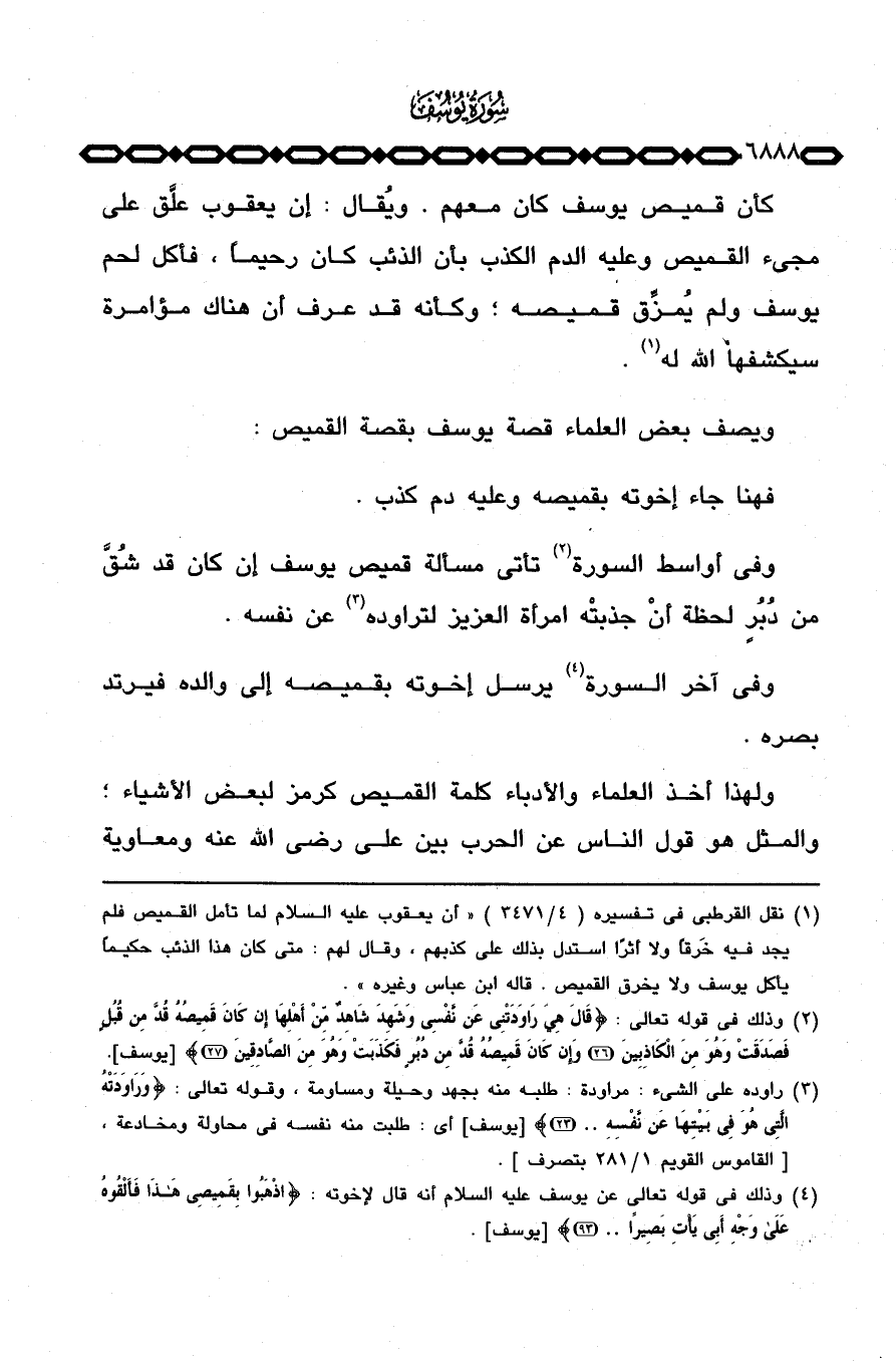 ولهذا أخذ العلماء والأدباء كلمة القميص كرمز لبعض الأشياء؛ والمثل هو قول الناس عن الحرب بين علي رَضِيَ اللَّهُ عَنْه ومعاوية رَضِيَ اللَّهُ عَنْه